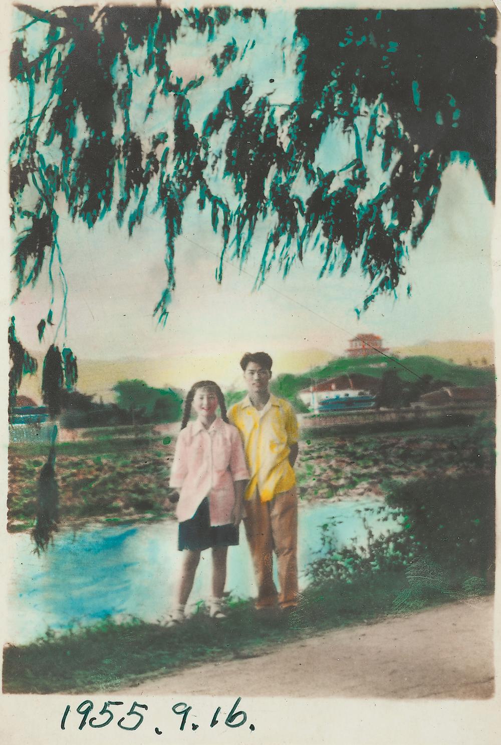 1955年9月16日,刘良达和刘秀美在福州西湖公园的第一张合影。