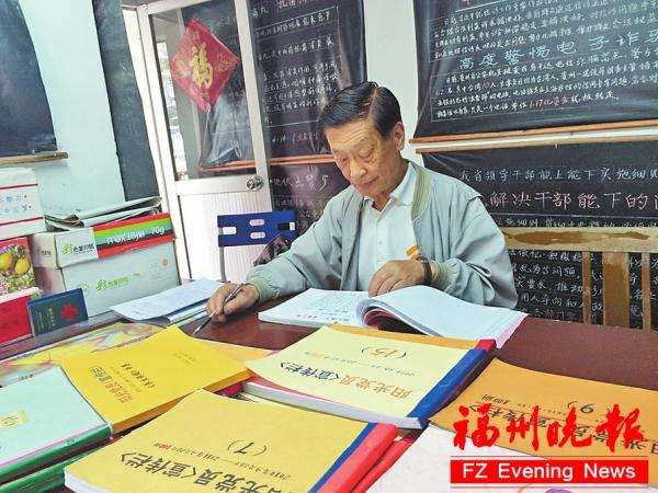 图片黄以孟每天花数小时看十几种报纸,提炼黑板报内容。