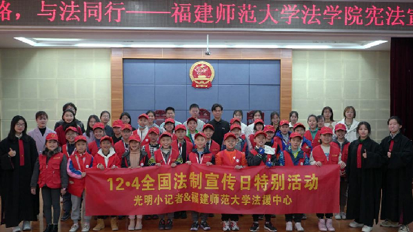 为大力弘扬宪法精神,加强青少年和青年的宪法教育,落实立德树人根本任务、培育社会主义核心价值观,光明小记者福州工作站携手福建师范大学(学生)法律咨询与援助中心(以下简称法援中心)于12月4日开展针对未成年人的法制宣传活动。
