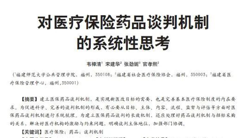 9年前,韦樟清、张劲妮等人曾在《中国医疗保险》杂志上一起发表过《对医疗保险药品谈判机制的系统性思考》的论文,当时张劲妮就职于福建省医疗保险管理中心。福建省医保局网站显示:去年10月,张劲妮被任命为福建省医疗保障局药械采购监管处处长。