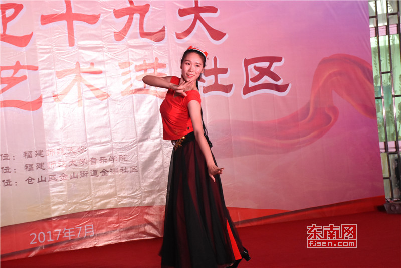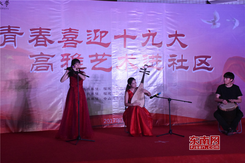 东南网7月3日讯(本网记者 张立庆)3日晚,福建师范大学音乐学院“先锋艺术团”45名师生,走进福州市仓山区金山街道金洲社区,开展“青春喜迎十九大,高雅艺术进社区”文艺演出,传递青春正能量,为社区群众送上了一场丰盛而高雅的艺术大餐。