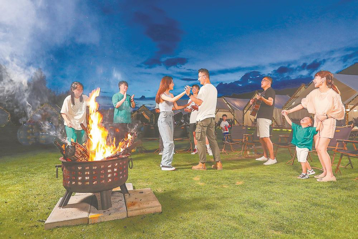 悠扬的音乐,激情的舞蹈,美味的食物……近日,游客在福清市城头镇湖美村露营地休闲娱乐。谢贵明 摄