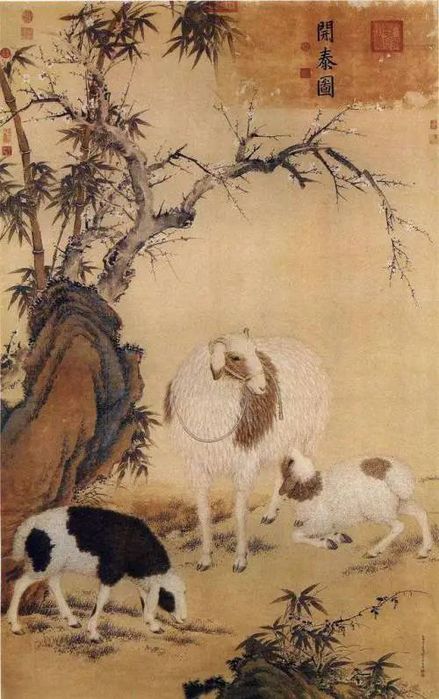 《泰》卦当值寅月,寅月是传统历法的正月(从夏历开始就使用,中间商历、周历、秦历岁首不同。西汉时的《太初历》,正式确定冬至所在月之后的第二个月,即寅月,作为岁首月,沿用至今。),所以,每到正月(寅月),我们时时、处处可以听到、看到“三阳开泰”这句话,这正因为《泰》卦六爻,下三爻为阳爻(乾卦)。我们看到,画家也常常取此题材,画三只羊,寓意“三阳开泰”,是以“羊”谐音“阳”。