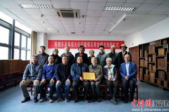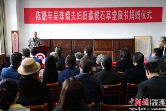 图为陈懋丰、吴珠端夫妇旧藏餐石草堂藏书捐赠仪式现场。福建师范大学供图