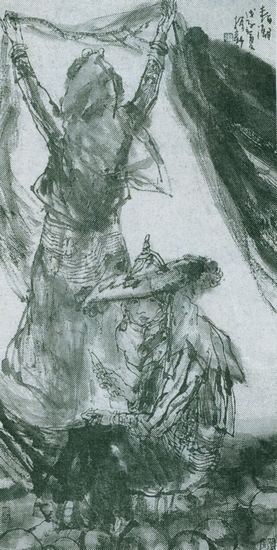 生命意识在翁振新的绘画作品中成为有别于庸常经验的新创造。他将表现性的笔墨意象符号——惠安女转化成为承载生命意识的象征形象。在笔墨风格的表现上,他以书入画,将渴笔焦墨、飞白舞动与水墨氤氲、漫溢抽象等表现手段因画而施,因兴而发,在率性的笔墨中浑洒着乡野和大海的单纯、浪漫和天真。这种单纯、浪漫与天真,使其作品显示出生命意识的强大力量,体现出了生命热情的涌动和生命活力的张扬,因此,他所追求的生命质地,也显示出了他那超人的才华和独特的美学追求。