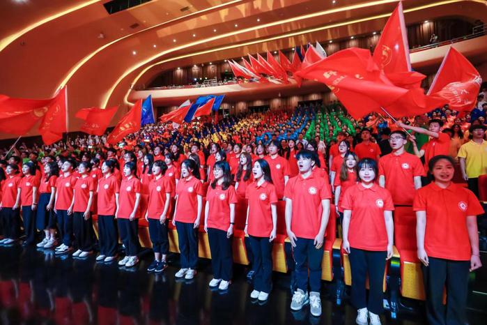 为学习贯彻党的二十大精神,深入开展学习贯彻习近平新时代中国特色社会主义思想主题教育,深化大学生思想政治引领,进一步密切高校、地方的联动,5月6日晚,“青春建功新时代 强国有我新征程”福州地区大学城高校学生大合唱汇演暨首届福州地区大学城文化艺术节开幕式活动在福州大学城文化艺术中心举行。