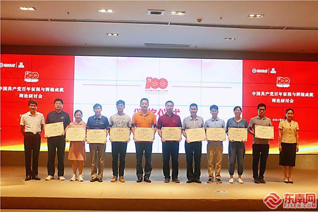研讨会举行了主题征文颁奖仪式。获奖师生代表从中国共产党百年征程中的经济建设、群众路线、思想建设等方面分享了各自的研究成果。本次研讨会之前,福建师范大学在校内组织开展“中国共产党百年征程与辉煌成就”主题征文活动,共收到学术论文200多篇。经专家评审、论文查重,评选产生出教工组、学生组优秀论文一等奖、二等奖、三等奖,共计61篇。