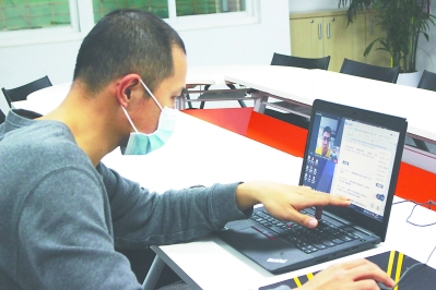 福建师范大学协和学院举办网络视频招聘会,企业相关负责人进行网络面试。 东南网记者 张立庆 摄