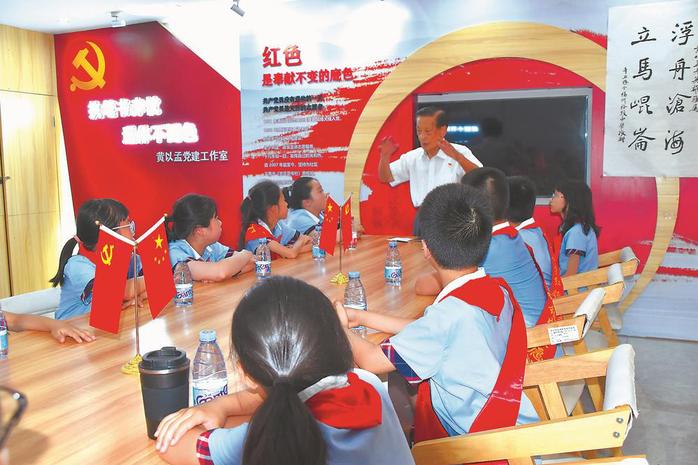 位于福州市仓山区对湖街道的黄以孟党建工作室,连日来迎来一批又一批少先队员。工作室主持人、91岁的老党员黄以孟向孩子们讲述他参加抗美援朝的经历以及退休后坚持服务社区居民的故事,以一名老党员的使命担当孜孜不倦地引导和教育下一代。 记者 吴洪 摄