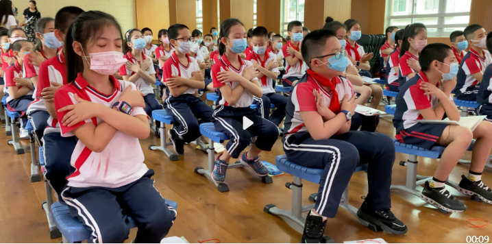 该校还开展了一场别样的升旗仪式,国旗下讲话包含了对学生进行疫情防控科普教育、生命与健康教育、心理健康教育。孩子们通过观看《复学第一课》学会了感恩、学会了爱国,明白了养成良好卫生习惯的重要性。