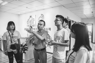 近日,福建师范大学闽南科技学院“探路者”暑期社会实践队前往龙岩,开展以“扬起梦想之帆,开拓创业之路”为主题的社会实践活动。图为实践队队员在参观龙岩市电商产业园。陈章宫 摄