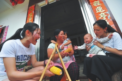 太拔中心小学的留守儿童李水珍很喜欢音乐和舞蹈,在外创业的妈妈也希望她能够在艺术上有所造诣。“这里没有专业的音乐老师,也没有正规的艺术培训中心,接受系统的艺术培训的机会太少了。”家访时,留守儿童李水珍的76岁奶奶黎辛兰与女大学生们分享了当地的艺术教育现状。所以,利用课外时间,三位女大学生还为村里的留守儿童和老人献上了小提琴独奏《念故乡》《情深无边》等经典名曲。悠扬的乐声让孩子和老人近距离地感受到了西洋乐器的魅力,陶醉其中。