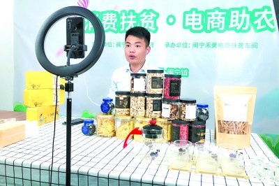 福建援宁干部李辉钦在闽宁镇的扶贫车间当起了主播。本报记者 张文攀摄/光明图片
