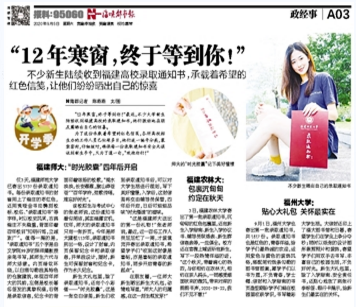 “12年寒窗,终于等到你!”最近,不少大学新生陆续收到福建高校的录取通知书,他们激动地在朋友圈晒出自己的惊喜。