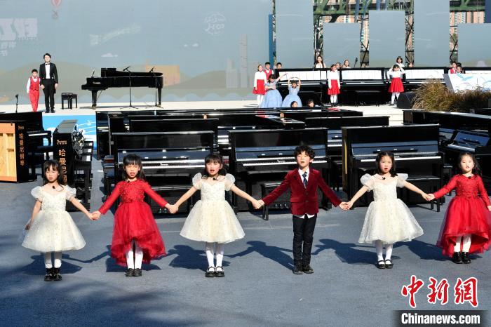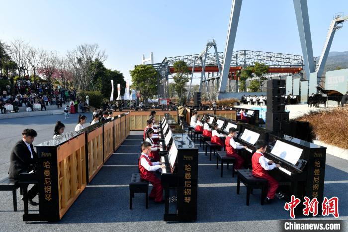 图为百台钢琴音乐会演奏现场。 吕明 摄