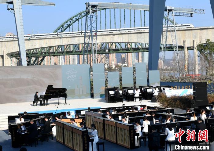 作为音乐旅游节的首场演出,“江海变奏时代华章”三江口百台钢琴音乐会亮相福州最美滨江景观带上的三江口生态公园。