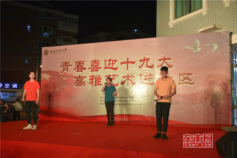 东南网7月3日讯(本网记者 张立庆)3日晚,福建师范大学音乐学院“先锋艺术团”45名师生,走进福州市仓山区金山街道金洲社区,开展“青春喜迎十九大,高雅艺术进社区”文艺演出,传递青春正能量,为社区群众送上了一场丰盛而高雅的艺术大餐。