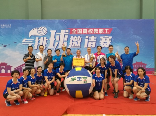 6月29日至7月1日,由中国教科文卫体工会全国委员会主办,河南科技大学等单位承办的首届全国高校教职工气排球邀请赛在河南省洛阳市举行,来自全国23个省、市、自治区的46支代表队共400余人参加了比赛。我校教工男子气排球队在25所高校男子气排球代表队中脱颖而出,荣获男子组第二名,为学校和我省高校赢得了荣誉。