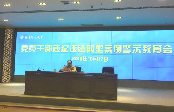 警示教育会于10月17日下午在旗山校区宏达厅举行。校纪委书记黄清波,机关部、处、馆、中心、集团、医院、公司中层干部,各单位党政主要负责人,校纪委委员,二级纪委书记,纪委办、监察处全体干部参加了会议。校纪委书记黄清波主持会议并讲话,会上通报了福建省纪委监委近期编印的《警示录——福建省党员干部违纪违法典型案例剖析》中的若干案例。