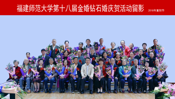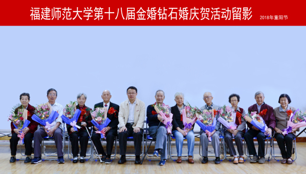 近日,我校第十八届金婚钻石婚庆贺活动在仓山校区综合体育馆多功能厅举行。校党委副书记潘玉腾,金婚、钻石婚夫妇,学校办公室、宣传部、离退休干部工作处、保卫处、校医院等有关同志参加了活动。